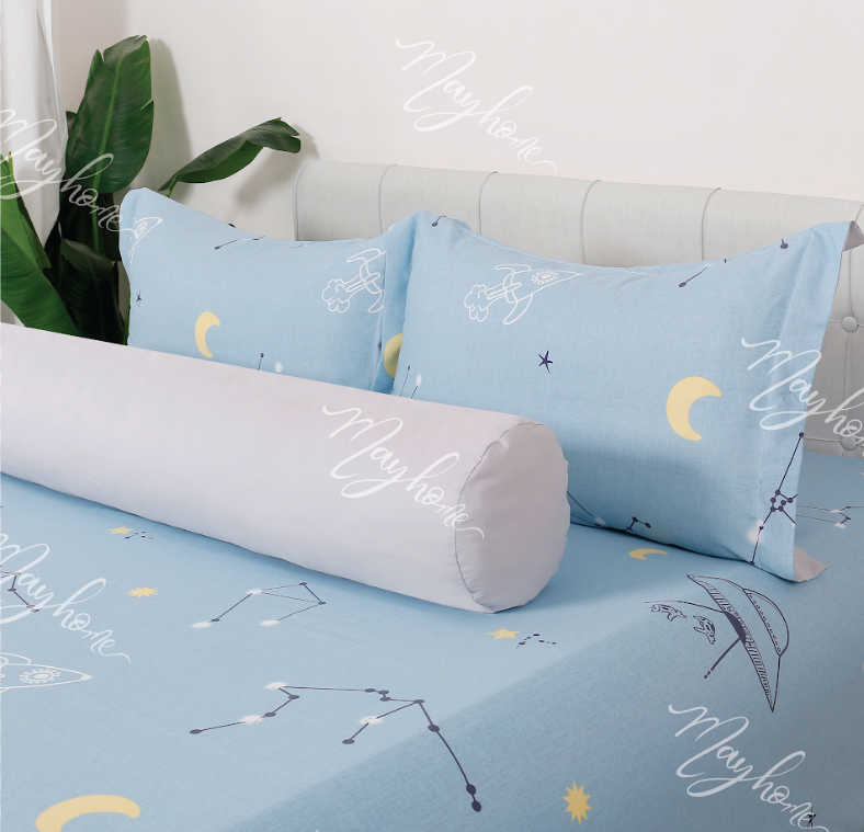 Bao gồn: 1 drap 180*200 ( chân drap +30 cm ), 2 áo gối nằm 50*70 cm, 1 áo gối ôm 37*105 cm