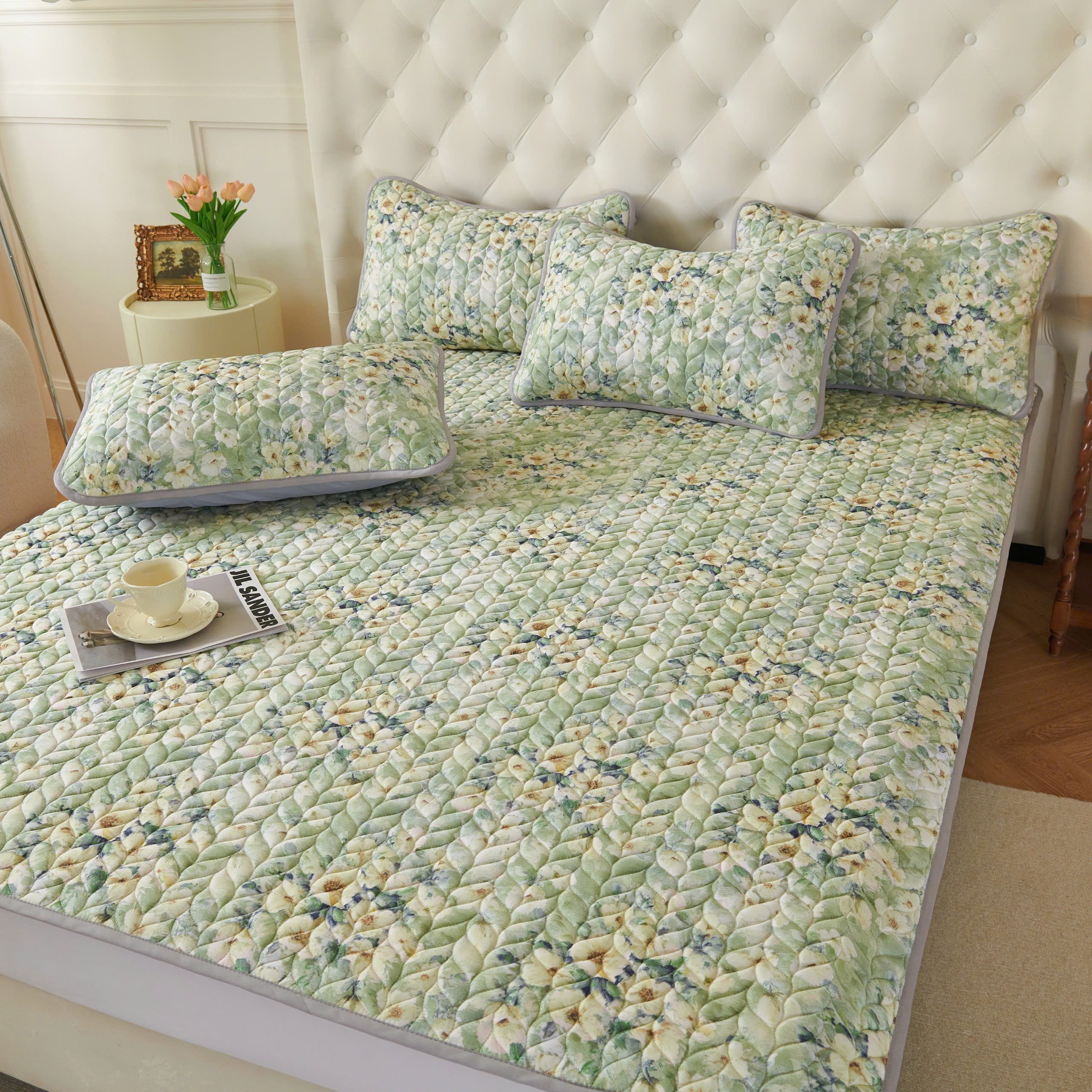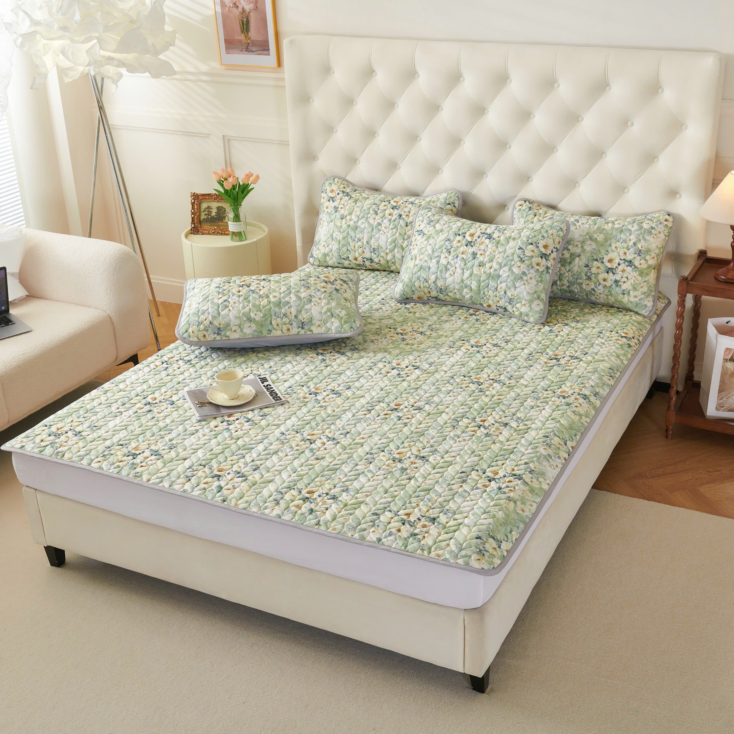 - Có thể giặt, vệ sinh tấm trải, áo gối.