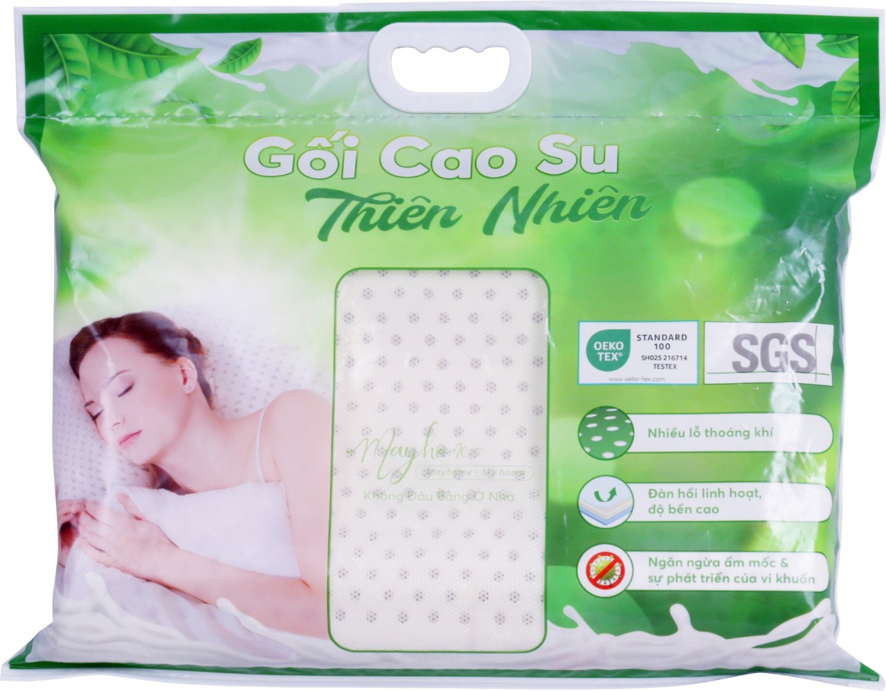 - Với chất liệu Thấp Cao su thiên nhiên nên độ đàn hồi rất thấp, nên khi ngủ cơ thể bạn bo sát vào cảm nhận được sự thoải mái và giảm các áp lực tì đè của cơ thể điều mà các loại chất liệu thường không làm được. Kết hợp với kiểu dáng có các lỗ thoáng khí 2 bè mặt gối: điểm này giúp cho người sử dụng có thể hỗ trợ đường thở lúc ngủ, giúp hô hấp tốt, dễ chịu và ngủ ngon - ngủ sâu.