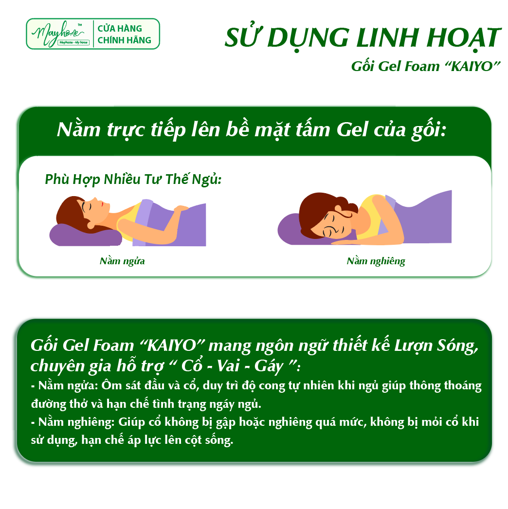 - Foam được đúc theo nhiều hình dạng, kích thước khác nhau, hỗ trợ người tiêu dùng tìm được những chiếc gối ngủ phù hợp với thói quen, hình thể, sở thích,... của người sử dụng. Nhằm: