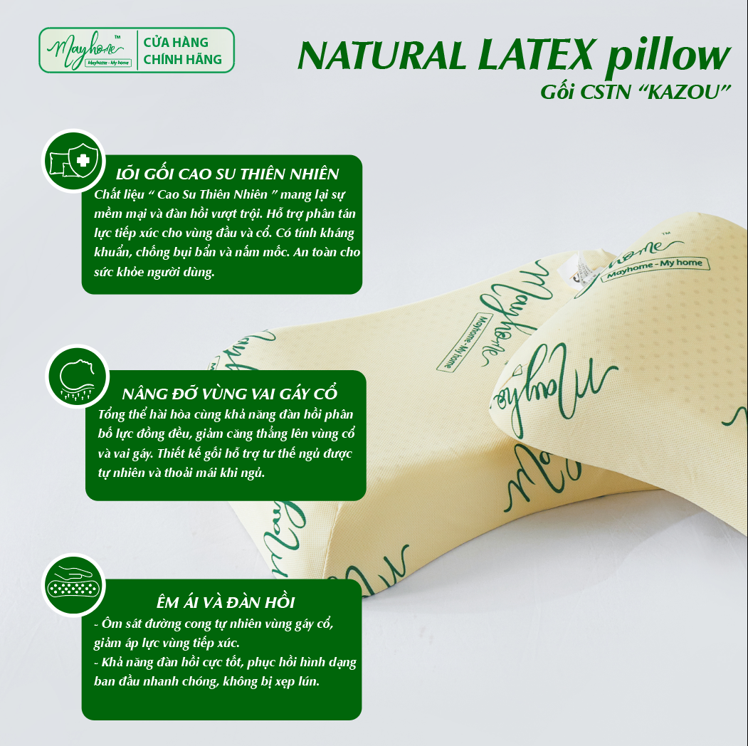 Tên sản phẩm: GỐI NẰM CAO SU THIÊN NHIÊN KAZOU