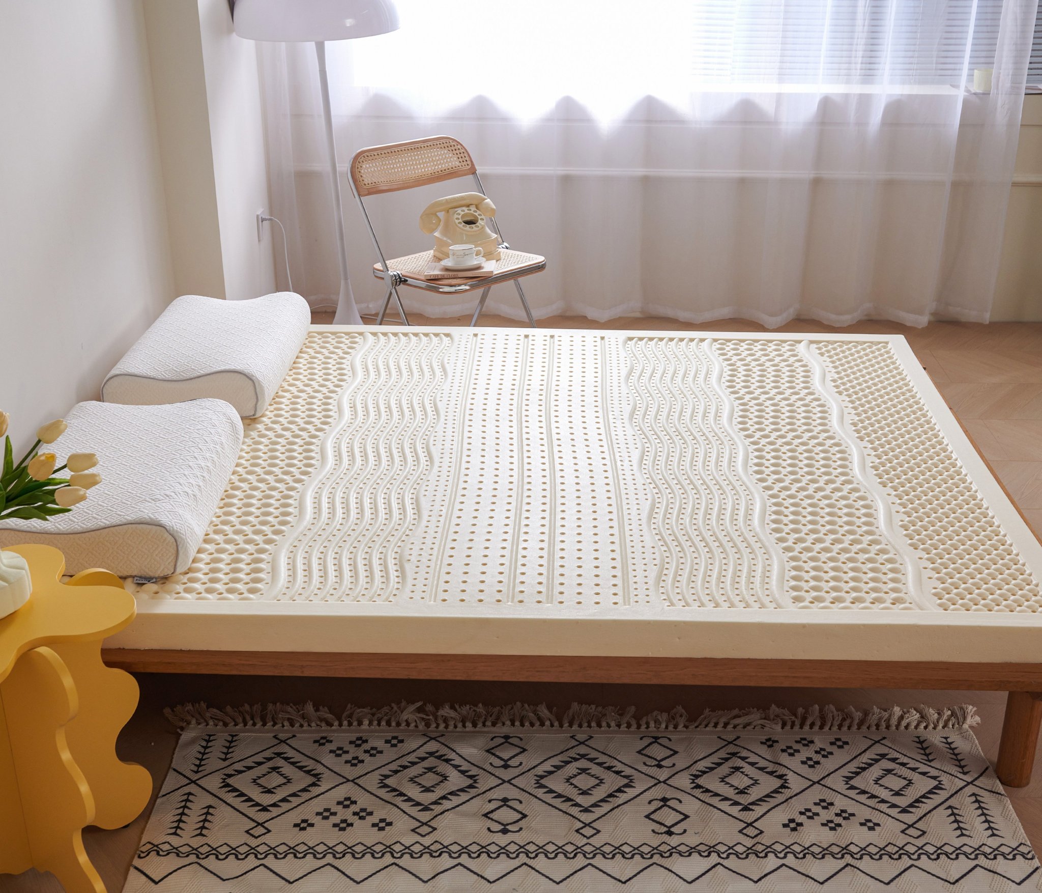 • Cao su thiên nhiên không gây dị ứng, có đặc tính kháng khuẩn, kháng côn trùng, vì thế bạn không lo vi khuẩn, nấm mốc hay côn trùng gây độc hại.
