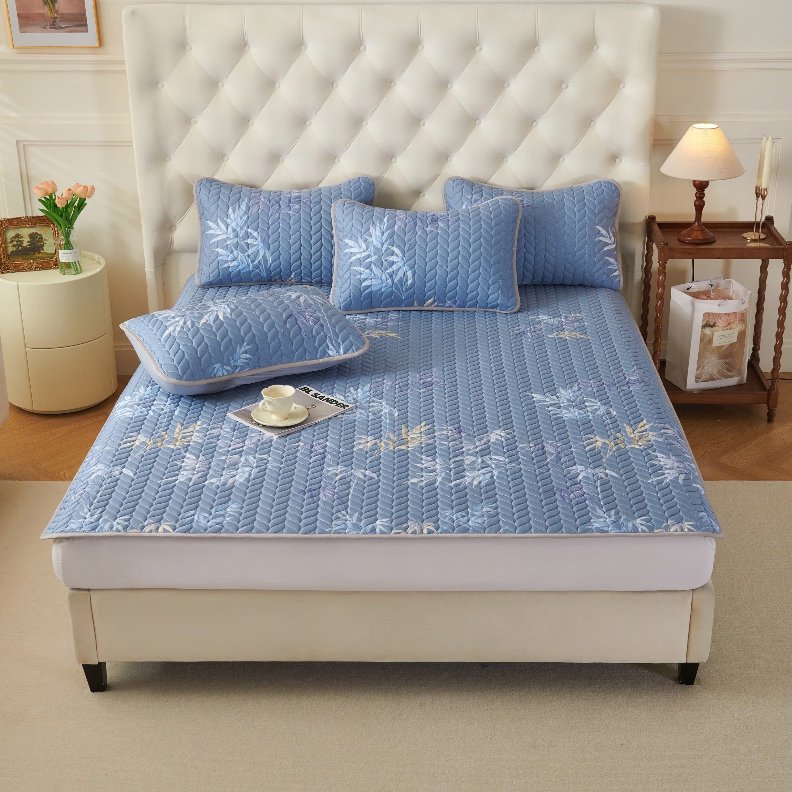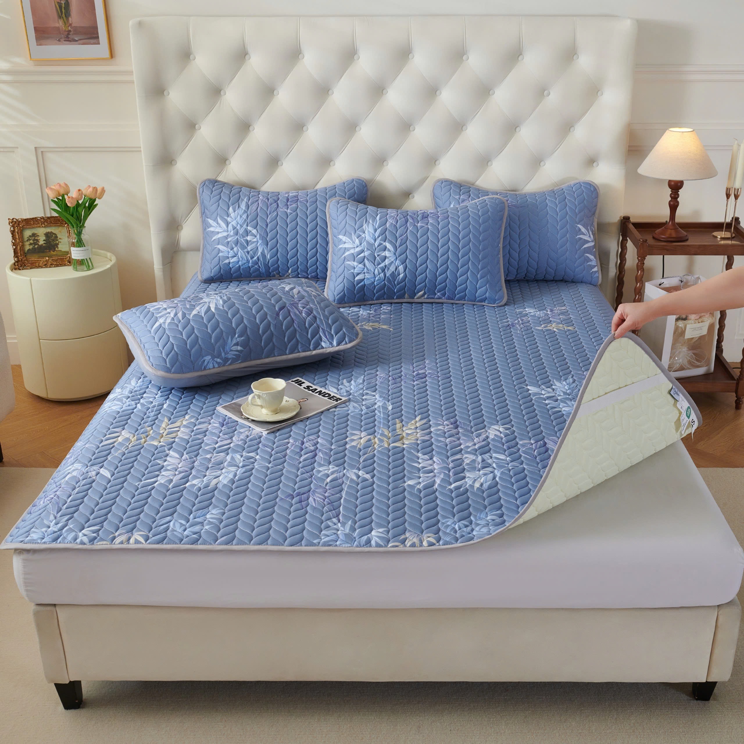 - Có thể giặt, vệ sinh tấm trải, áo gối.