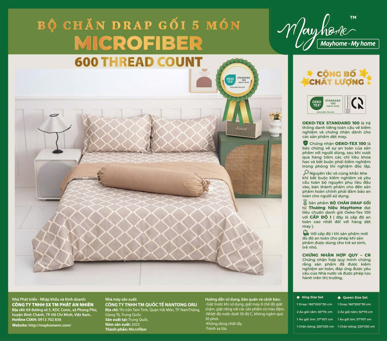 BỘ CHĂN DRAP GỐI MIC 600TC 180*200CM (MH2025-6)