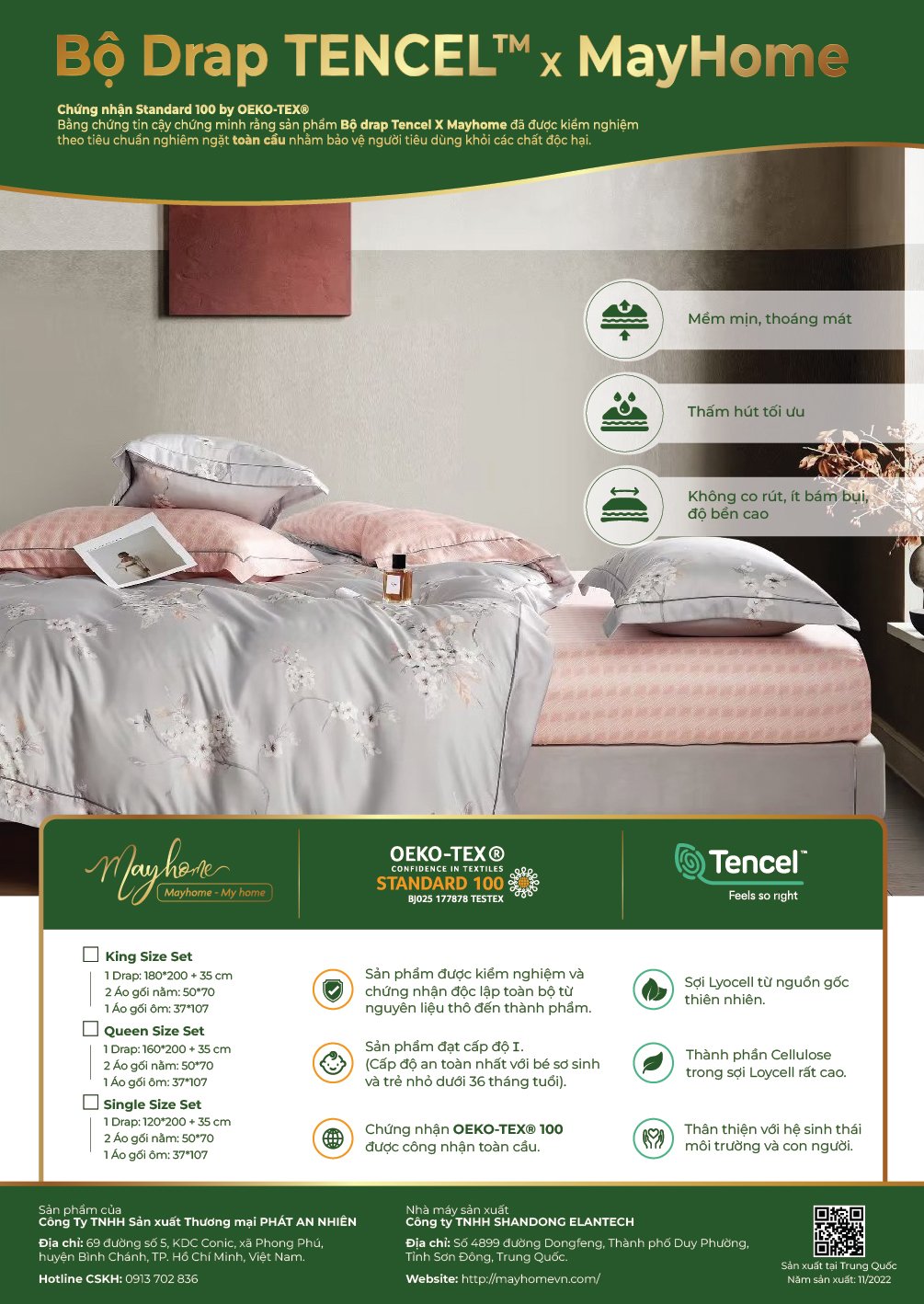 - MayHome vinh dự được Tập đoàn Lenzing AG ( Áo) cấp chứng nhận về nguồn gốc nguyên liệu và chấp thuận để MayHome sử dụng thương hiệu TENCEL™ tại Việt Nam, Nhật Bản và Châu Âu.