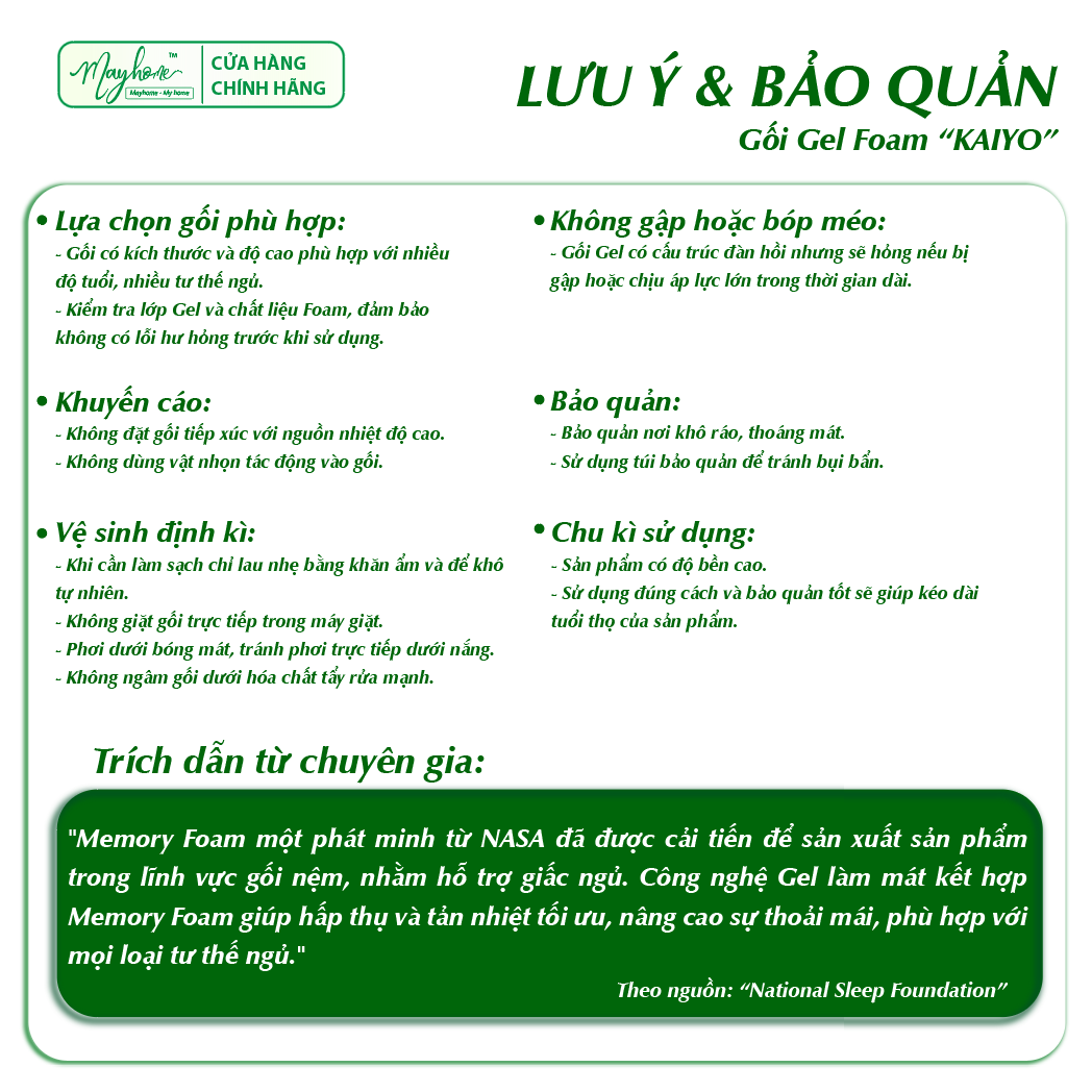 - Foam được đúc theo nhiều hình dạng, kích thước khác nhau, hỗ trợ người tiêu dùng tìm được những chiếc gối ngủ phù hợp với thói quen, hình thể, sở thích,... của người sử dụng. Nhằm: