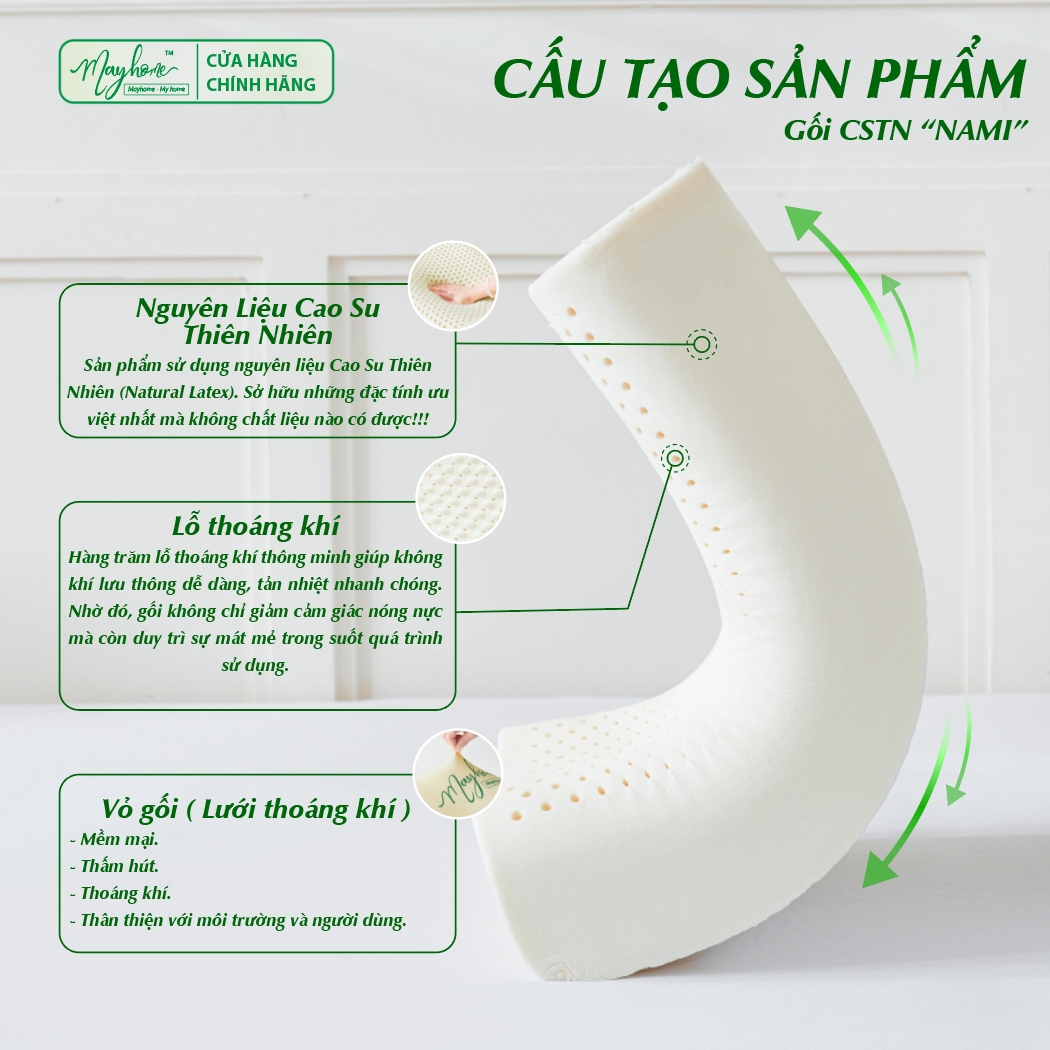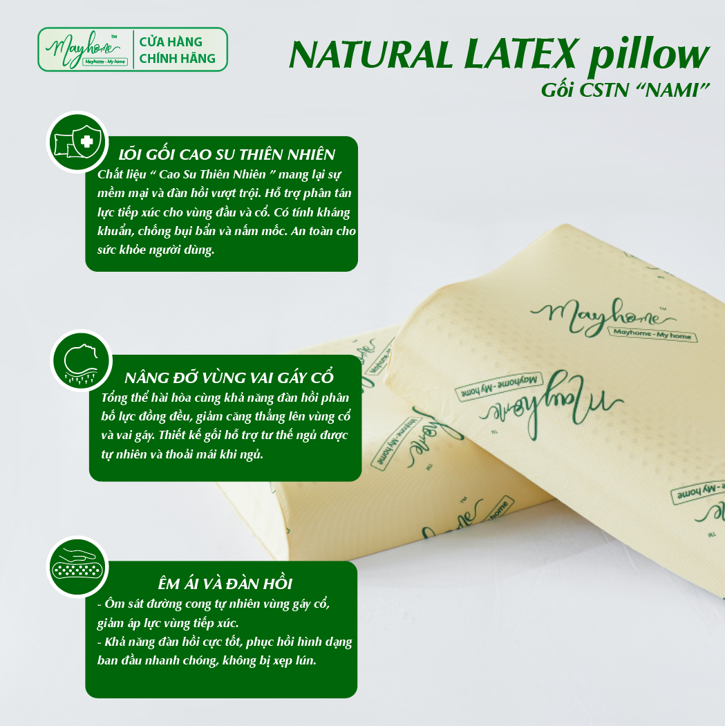 Tên sản phẩm: GỐI NẰM CAO SU THIÊN NHIÊN NAMI