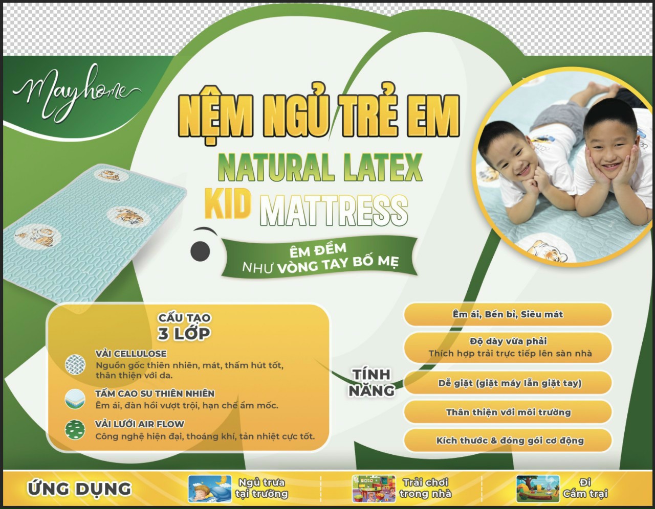 Tên sản phẩm: NỆM NGỦ TRẺ EM MAYHOME - NATURAL LATEX KID MATTRESS